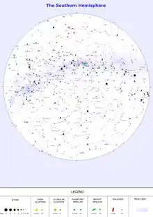 - Esta obra contiene una traducción derivada de «Southern celestial hemisphere» de Wikipedia en inglés, concretamente de esta versión, publicada por sus editores bajo la Licencia de documentación libre de GNU y la Licencia Creative Commons Atribución-CompartirIgual 4.0 Internacional.