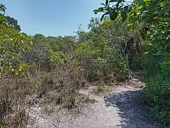 Esta especie es considerada muy local, pero aparentemente puede ser común en su hábitat natural correcto: los bosques de arenas blancas, que van de altos a enanos, distribuidos fragmentadamente, denominados campinas, por debajo de los 200 m de altitud.[6]