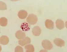 Durante fase esquizogónica eritrocitaria (Ocurre dentro del humano, se caracteriza por ser una reproducción asexual, ocurre después de la fase intrahepática), el Plasmodium falciparum consume hasta el 80% de la hemoglobina de la célula huésped.[8][9] La digestión de la hemoglobina libera α-hematina monomérica (ferriprotoporfirina IX). Este compuesto es tóxico, ya que es un pro-oxidante y cataliza la producción de especies reactivas de oxígeno. Se cree que el estrés oxidativo se genera durante la conversión de hemo (ferroprotoporfirina) en hematina (ferriprotoporfirina IX). La hematina libre también puede unirse y romper las membranas celulares, dañando las estructuras celulares y causando la lisis del eritrocito.[10][11]