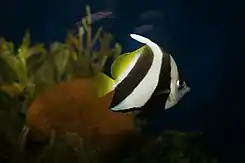 El pez estandarte escolar o falso ídolo moro (Heniochus diphreutes) es un pez marino, de la familia de los Chaetodontidae.