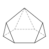 Por definición, un heptaedro es un poliedro que tiene siete caras.[2] Esta figura puede adoptar una gran cantidad de formas o topologías básicas diferentes. Las más familiares son la pirámide hexagonal y el prisma pentagonal. También es notable el tetrahemihexaedro, que puede verse como un teselado del plano proyectivo real. Ningún heptaedro es regular.