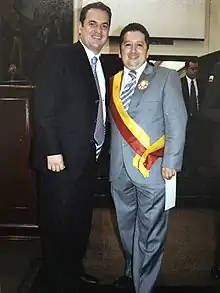 ![]() Hoyos (derecha) recibiendo una condecoración | ||