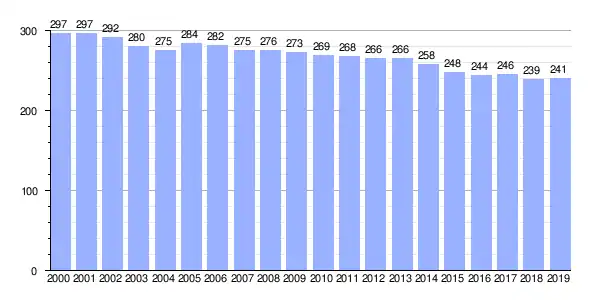 | Gráfica de evolución demográfica de Herbogo (parroquia) entre 2000 y 2019 |