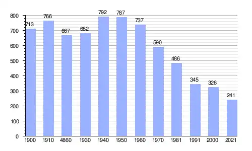 | Gráfica de evolución demográfica de Herguijuela de la Sierra entre 1900 y 2021 |