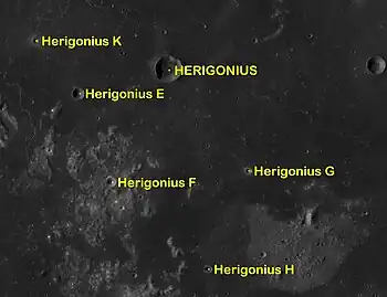 Por convención estos elementos se identifican en los mapas lunares colocando la letra en el lado del punto medio del cráter que está más cercano a Herigonius.