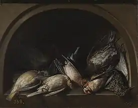 Una Cena de Emaús en Besanzón, Musée des Beaux-Arts, indica que también abordó la pintura historiada y de asunto religioso, pero es en el género del bodegón donde alcanzó resultados pictóricos más convincentes, de lo que es buena muestra el Bodegón de caza del Museo del Prado.[3] Dentro de una hornacina o nicho oscuro, iluminado lateralmente, se disponen seis pájaros muertos pintados con pinceladas pequeñas y minuciosas, que hacen vibrar a la luz el plumón de sus panzas. Firmado con monograma H. VOLHOO. F., la fecha, aunque se lee mal, pudiera ser 1615. Otros dos cuadros semejantes fueron publicados por Willingen y Meijer, uno en colección particular irlandesa, fechado en 1619, y otro subastado en Dordrecht en 1990, fechado en 1613, sobre un fondo de paisaje añadido posteriormente.[4]