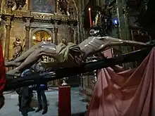 Las primeras noticias del culto a la Imagen del Cristo por parte de la Comunidad de Padres Carmelitas datan del año 1939. Durante la Guerra Civil Española el convento fue asaltado y la Imagen del Crucificado atacada, fue intentada derribar mediante sogas que ataron a los brazos de la cruz, la cual se mantuvo firme, y no cayó ante el ataque.