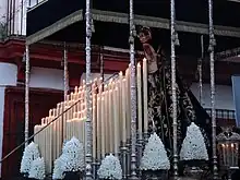 El segundo de los pasos es el de Nuestra Señora de las Lágrimas, se trata de un paso de palio de trazas clásicas, con las caídas de tipo cajón, y unos faroles de cola. Las jarras de dicho paso son peculiares por la colocación tronco-cónica del exorno floral.