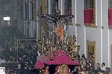 - Palio de Respeto, tras el paso del Señor, con bordados en oro del XVIII, pasados en 1956.