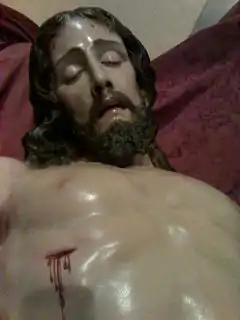 El 22 de julio de 1936, al incendiarse la Parroquia, se quemó el Cristo Yacente. Y, el 1 de marzo de 1943, las hermanas Cayetana y Paquita Criado compraron el Cristo actual, a la firma Valentín Caderot de Madrid.