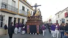 - Pasos: La procesión consta de 3 pasos. El primer paso porta el Cristo de la Misericordia acompañado de la virgen María, María Magdalena y San Juan Evangelista. En el segundo al Santísimo Cristo de la Paz Eterna en su urna. El Tercer paso porta a Nuestra Señora de la Encarnación en Soledad seguida de la cruz y dos escaleras.