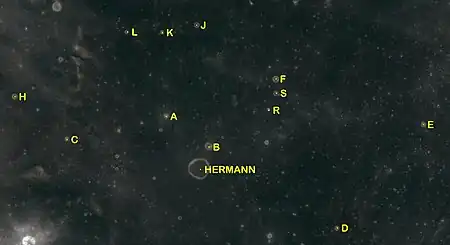 ![]() Imagen de la misión Lunar Orbiter 4 de Hermann (centro) y Hermann B (arriba derecha) | ||