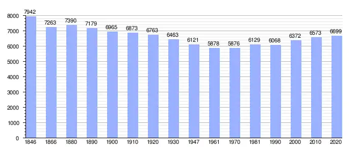Todos los datos históricos relativos al actual municipio, el siguiente gráfico refleja su evolución demográfica, incluyendo municipios después de efectuada la fusión el 1 de enero de 1977.
