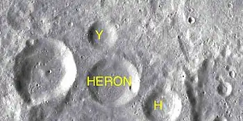 Por convención estos elementos se identifican en los mapas lunares colocando la letra en el lado del punto medio del cráter que está más cercano a Heron.