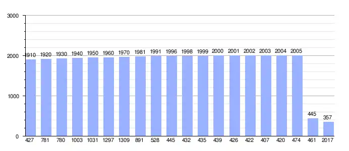 A principios del siglo pasado alcanzó el millar de habitantes, llegando a contar a mediados con casi 1300 habitantes, pero su tendencia es desde entonces descendiente, a favor de otros núcleos cercanos. Ya en 1975 la población descendió a 596 habitantes, tendencia que se ha suavizado en las últimas décadas hasta contar, según la última revisión, con 387 habitantes.