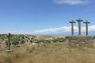 - El Calvario. Conocido también simplemente con el nombre de «las cruces». Considerado como uno de los calvarios mejor conservados de la zona. Discurre desde el atrio de la Iglesia de San Ildefonso por diversas calles del pueblo hasta finalizar su recorrido en este característico cerro plagado de cruces. Se desconoce la antigüedad de las cruces, todas ellas de piedra y de iguales composiciones. Están hechas de piedra de granito (muy habitual en la zona), con una base cúbica de unos 90 - 110 cm de anchura por 80 cm de altura y una cruz de 120 cm de altura aproximadamente, con excepción de la triple cruz que culmina el monte, cuya base es mucho más alta y amplia. Se compone en total de 14 cruces. Es muy tradicional su Via crucis, que se celebra el día de Viernes Santo a media mañana. En cada una de las cruces se reza lo que llaman una estación, que narra los momentos vividos por Jesucristo en la Pasión.