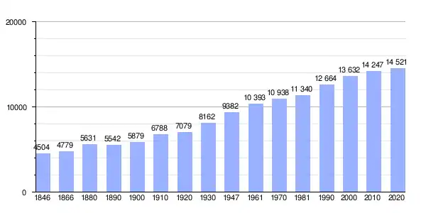 Todos los datos históricos relativos al actual municipio, el siguiente gráfico refleja su evolución demográfica, incluyendo municipios después de efectuada la fusión el 1 de enero de 1977.