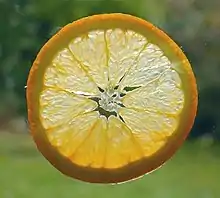 Los carpelos del endocarpio poseen una especie de bolsas (las cuales son en realidad pelos trasformados) que están rellenas de un líquido fragante o "zumo", el cual puede poseer sabores amargo, agrio o dulce según la variedad. El mismo es muy rico en ácido cítrico y ácido ascórbico (vitamina C).