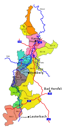 Hessengau corresponde aproximadamente a las regiones marcadas con 343.2