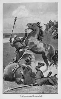 Hestavíg era una actividad de entretenimiento durante la Era vikinga en la Mancomunidad Islandesa (930 - 1262), presuntamente un deporte que consistía en un brutal y sangriento enfrentamiento entre dos caballos sementales, azuzados por sus amos, que principalmente servía para elegir los mejores ejemplares para la reproducción.[1] Era un acontecimiento cultural de enorme importancia y a veces comportaba enfrentamientos verbales y físicos entre los espectadores. El triunfo de un ejemplar u otro, podía repercutir social y políticamente en los pactos y alianzas entre los goði (caudillos) y bóndi (colonos granjeros), como se testimonia en las sagas nórdicas.[2] El emplazamiento donde se celebraba estas batallas era un lugar neutral que se aprovechaba para fortalecer amistades o donde tratar asuntos entre rivales; también era una ocasión para el cortejo entre parejas jóvenes.[3]