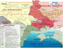 En la segunda mitad del siglo XVIII, Catalina la Grande instigó la histeria en la población ortodoxa oriental local al prometer protección contra el catolicismo, que condujo a un conflicto armado, la rebelión Koliívschyna en la vecina Ucrania del Margen Derecho, que formaba parte de la República de las Dos Naciones y concluyó en la Confederación de Bar, que acabó con la invasión militar rusa y las Particiones de Polonia. A fines del siglo XVIII, Rusia se anexionó por completo la mayor parte de Ucrania.[4]