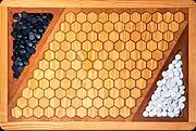 El tablero es un rombo formado por hexágonos, los dos lados opuestos del rombo esta indicados en un mismo color, el número de hexágonos es variable, si bien suele rondar los diez por lado.