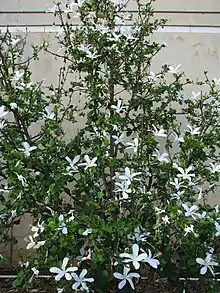Las flores son individualmente y terminales en las ramas. Las flores ligeramente fragantes tienen la forma de un molino de viento con un diámetro de hasta 10 centímetros. Los pétalos son generalmente de color blanco, a veces con un poco de color rosa o de color rosa pálido con la edad.
