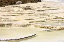 Las formaciones de rocas se describen lo general como “Cascadas de sal”, “Cascadas Petrificadas” y “Cascadas Pétreas”.[2] Las caídas se forman por cantidades relativamente pequeñas de agua que tiene sobresaturación de carbonato de calcio y se presentan en la superficie por medio de fisuras o figuras en el sitio de la montaña. El agua tiene una temperatura que va desde los 22 °C hasta los 27 °C. Conforme el agua fluye hacia debajo desde la cara de la roca, esta forma largas estalactitas similares a las que se encuentran en las cavernas. El flujo de agua que se presenta en primavera, varía significativamente entre las temporadas de sequía y las de lluvia.[5] El 95% de la superficie de las formaciones rocosas son de carbonato de calco; sin embargo, las capas inferiores de ambas corrientes, roca y agua, son pocos conocidas, ya que están selladas por las capas superiores. El carbonato de calcio le da a las formaciones una apariencia blanca o casi blanca, pero otros minerales que se pueden encontrar en el agua, como plata, bario o hierro pueden determinar el color particular de la estalactita. El carbonato de calcio en el agua se da porque el agua de lluvia se filtra al subsuelo. Primero se absorben el dióxido de carbono, que forma moléculas de ácido de carbono. Este ácido tiene contacto con el marfil que se encuentra bajo tierra y la disuelve, creando bicarbonato de calcio. Cuando el agua corre sobre la tierra, el exceso de minerales sale.
