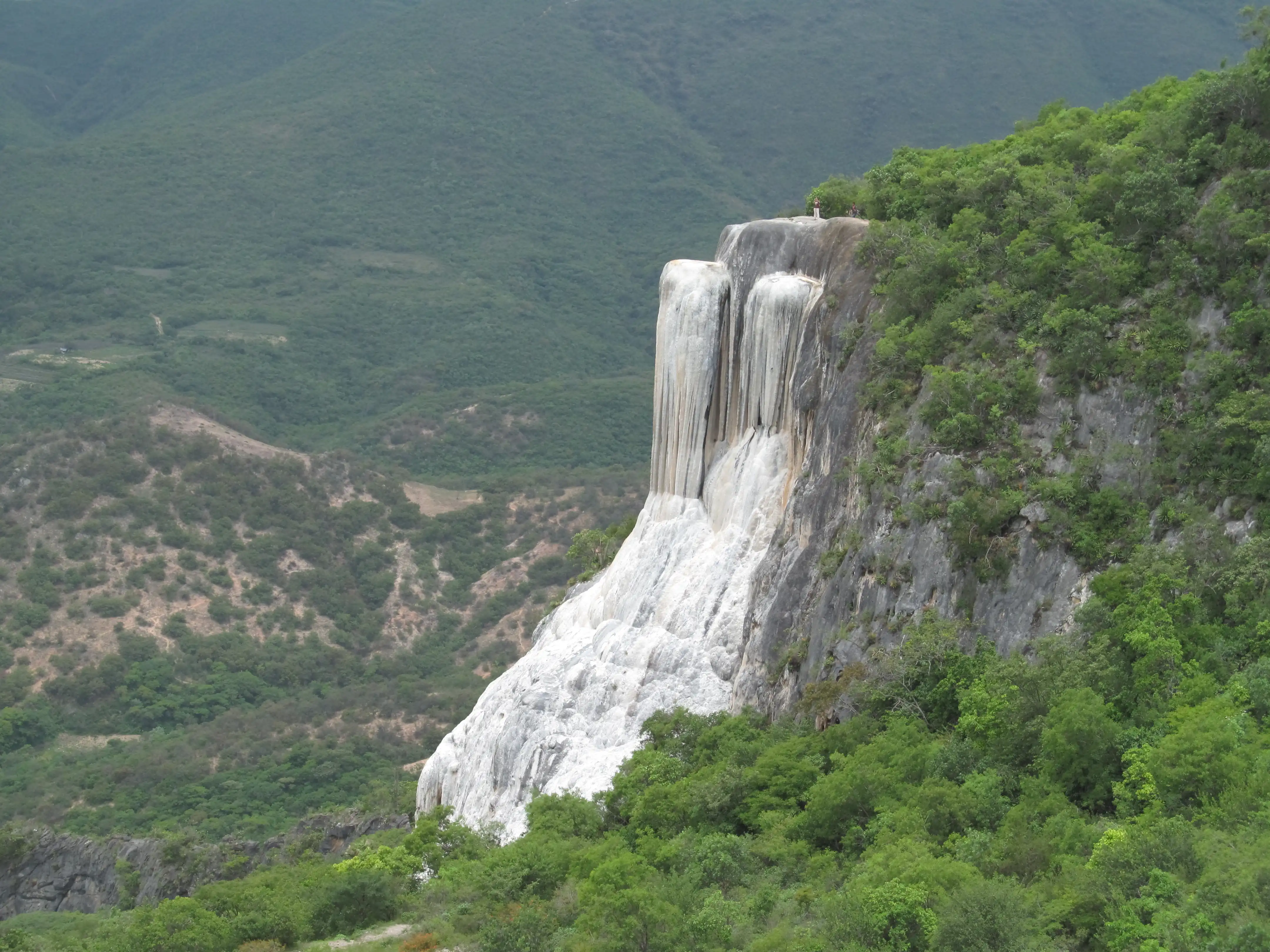 Hierve el Agua es un sistema de cascadas petrificadas, formadas por carbonato de calcio. Las cascadas son de origen natural y se formaron hace miles de años por el escurrimiento de agua con alto contenido de minerales. El lugar se ubica a unos 70 km de la ciudad de Oaxaca, en la población de San Isidro Roaguía, municipio de San Lorenzo Albarradas, estado de Oaxaca, en México, en las cercanías de la zona arqueológica de Mitla y a 630 km de la Ciudad de México. Aún no cuenta con alguna categoría de protección, como área natural protegida o reserva de la biosfera.