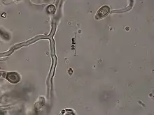 Las hifas pueden presentar un tipo de segmentación que divide al filamento por medio de tabiques denominados septo, los núcleos de estas pueden ser uninucleares o pluricelulares, estos pueden migrar a través de los septos por unas estructuras denominada poros, con el fin de reproducirse y realizar intercambio genético, lo cual permite la separación citoplasmática. Por otro lado, hay hongos que no presentan este tipo de morfología y se denominan cenocíticos, que pueden contener de cientos a miles de núcleos a lo largo de todo el filamento citoplasmático.[8][9]