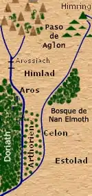 En el curso superior del Aros se encuentra el vado de Arossiach, que comunica Himlad con las tierras de Dor Dínen, por medio del camino viejo que las atraviesa y comunica con el peligroso valle de Nan Dungortheb.