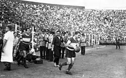 En 1948 los hinchas estuvieron enfurecidos con la huelga de jugadores porque perjudicó a Racing en la pelea del campeonato.[25] Pese a esto, un año después el club lograría su primer título profesional con sus hinchas festejando en el estadio de Boca tres fechas antes de que finalizase el torneo. Para este tiempo, Racing era el club con más socios en Argentina, teniendo una masa societaria de 41 000 personas.[26]