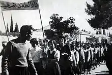 ![]() Hind al-Husseini en una manifestación con alumnas (Jerusalén). | ||