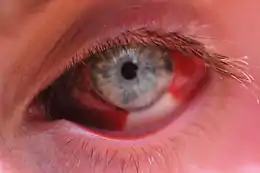 | Síntomas | Mancha roja sobre el blanco del ojo, poco o ningún dolor. | |