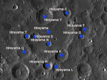 Por convención estos elementos se identifican en los mapas lunares colocando la letra en el lado del punto medio del cráter que está más cercano a Hirayama.