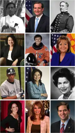 «Hispano» (Hispanic) o «latino» (Latino) es un autodesignación hecha por 47 millones de estadounidenses, a partir de 2008. Son personas con origen en las naciones de habla española, mayoritariamente de México y el resto de América Latina, mientras que un porcentaje minoritario tiene sus orígenes en España. Sin embargo, hay decenas de miles originarios de otros lugares. Así, el 1,1 % de los estadounidenses hispanos y latinos nacieron en Asia, una cifra diminuta, por ejemplo.[15] Al igual que sus países de origen, el grupo es heterogéneo en varias formas, incluyendo la raza y la ascendencia.