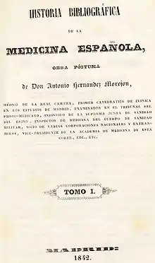 Historia bibliográfica de la medicina española es una obra del médico e historiador Antonio Hernández Morejón, publicada de forma póstuma y en siete volúmenes entre 1842 y 1852.[1]