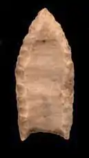 Las herramientas de piedra, en particular las puntas de proyectiles y los raspadores, son la principal evidencia de la actividad humana temprana en las Américas. Los arqueólogos y antropólogos utilizan las lascas líticas artesanales para clasificar los períodos culturales.[14] Pruebas científicas vinculan a indígenas americanos con pueblos asiáticos, concretamente con poblaciones siberianas orientales. Los pueblos indígenas de las Américas se han relacionado con poblaciones del norte de Asia por dialectos lingüísticos, la distribución de tipos de sangre, y en composición genética como reflejan los datos de molecular, como el ADN.[15] 8000-7000 a. C. (hace 10 000-9000 años) el clima se estabilizó, lo que provocó un aumento de la población y avances en la tecnología lítica, dando lugar a un estilo de vida más sedentario.