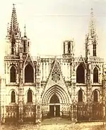 En el siglo XII se construyeron diversas fortificaciones para reforzar las defensas de las puertas de la muralla: el Castell Nou, en el Call; el castillo de Regomir, en la puerta del Mar; y el castillo del Ardiaca en el Portal del Bisbe (plaza Nueva).[129] La prosperidad ganada con la expansión territorial propició los primeros asentamientos extramuros de la ciudad, una vez alejado el peligro de las incursiones musulmanas. Se crearon diversos núcleos de población (vila nova), generalmente en torno a iglesias y monasterios: así ocurrió alrededor de la iglesia de Santa María del Mar, donde se creó un barrio de carácter portuario; igualmente en la iglesia de San Cucufate, de carácter agrario; el barrio de San Pedro en torno a San Pedro de las Puellas; el barrio del Pino surgió alrededor del iglesia de Santa María del Pino; el de Santa Ana junto a la iglesia homónima; el barrio de Arcs se asentó alrededor del Portal del Bisbe; y el Mercadal, en torno al mercado del Portal Mayor.[130] También se fue formando poco a poco el barrio de El Raval («arrabal»), inicialmente un suburbio poblado de huertos y algunos edificios religiosos, como el monasterio de San Pablo del Campo (914), la iglesia de San Antonio Abad (1157), el convento de los carmelitas calzados (1292), el priorato de Nazaret (1342) o el monasterio de Montalegre (1362).[131]