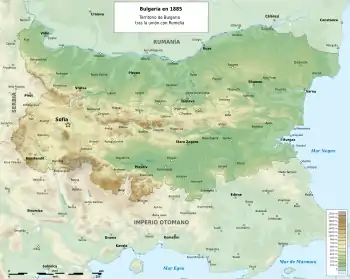 Las ambiciones nacionalistas no se conformaron con la autonomía y se extendieron a los territorios búlgaros todavía en poder del Imperio otomano: en 1885 el Ejército de Bulgaria ocupó la provincia de Rumelia Oriental, al mismo tiempo que estalló la guerra contra Serbia, de la que los búlgaros salieron victoriosos. Poco después el rey Alejandro I cesó a su Consejo de Ministros rusos, lo que provocó la intervención de Rusia en represalia y defensa de su influencia. Los rusos organizaron un complot militar en contra del rey búlgaro. A pesar del apoyo de los nacionalistas, Alejandro I fue obligado a abdicar debido a una conspiración orquestada por el Gobierno de Rusia. Stefan Stambolov tomó el poder y la asamblea búlgara eligió en 1887 un nuevo príncipe: Fernando de Sajonia-Coburgo, que en 1894 consiguió la caída de Stambolov, que había constituido una dictadura (y que moría asesinado en 1895). El 22 de septiembre de 1908, con el apoyo del emperador de Austria-Hungría, Fernando I proclamó en Tarnovo la independencia de Bulgaria y tomó el título de zar.