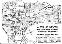 A fines del siglo XIX, la industria de Newark se desarrolló aún más, especialmente gracias a los esfuerzos de hombres como JW Hyatt. A partir de mediados de siglo, numerosos inmigrantes irlandeses y alemanes se trasladaron a la ciudad. Los alemanes eran principalmente refugiados de las revoluciones de 1848,[20] y, como hicieron otros grupos más tarde, establecieron sus propias empresas étnicas, como periódicos y cervecerías. Sin embargo, existían tensiones entre el "stock nativo" y los grupos más nuevos.