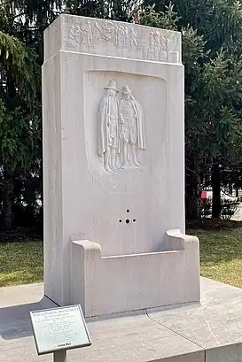 First Landing Party of the Founders of Newark (1916) e Indian and the Puritan (1916) son dos de las cuatro obras de arte públicas creadas por Gutzon Borglum que se encuentran en Newark para conmemorar la fundación de la ciudad.[14][15] Se agregaron al Registro de Lugares Históricos de Nueva Jersey el 13 de septiembre de 1994,[16] y al Registro Nacional de Lugares Históricos el 28 de octubre de 1994 como parte de una presentación de propiedad múltiple, "La escultura pública de John de la Mothe Gutzon Borglum, 1911-1926".[16][14]