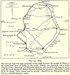 - S. Percy Smith, Niuē-fekai (or Savage) Island and its People, 1903, pp.36-44