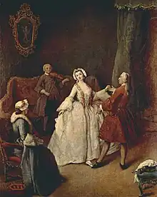 En el siglo XVIII —la época del Rococó— continuó la primacía francesa, donde en 1713 se creó la Escuela de Ballet de la Ópera de París, la primera academia de danza. Raoul-Auger Feuillet creó en 1700 un sistema de notación de danza, para poder transcribir por escrito la diversa variedad de pasos de danza. En esta época la danza comenzó a independizarse de la poesía, la ópera y el teatro, consiguiendo autonomía propia como arte, y formulando un vocabulario propio. Se empezaron a escribir obras musicales solo para ballet, destacando Jean-Philippe Rameau –creador de la opéra-ballet–, y comenzaron a surgir nombres de bailarines destacados, como Gaetano Vestris y Marie Camargo. A nivel popular, el baile de moda fue el vals, de compás ¾, mientras que en España surgió el flamenco.[7]