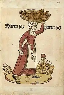 Otro de los pescados más conservados en salazón es el arenque, un pescado que se prepara de muchas formas y es muy habitual en muchos países del norte de Europa. Se puede encontrar en muchos mercados de la actualidad e históricamente también en la Edad Media. En París existían los harengères (vendedores de arenque). También es común en Holanda, Alemania del norte, Suecia, etc. El arenque rara vez llegó a ser popular en los países del Mediterráneo y por eso solo fue comercializado en los países del norte de Europa.[54]