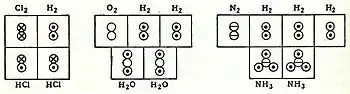 En 1789, William Higgins publicó su punto de vista en lo que llamaba las combinaciones de las partículas "últimas", lo cual sentó las bases para el concepto de enlaces de valencia. Por ejemplo, de acuerdo a Higgins, si la fuerza entre la última partícula de oxígeno y la última partícula del nitrógeno fuera de 6, entonces la magnitud de dicha fuerza se dividiría equitativamente, e igual con otras combinaciones de partículas últimas: