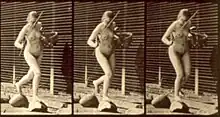 Dickson abandonó el empleo de Edison y creó su propia compañía para producir el mutoscopio, una máquina a manivela que mostraba películas por una mirilla. Estas máquinas generaban imágenes en movimiento gracias a un tambor giratorio de tarjetas de ilustraciones, tomadas de un trozo de película. A menudo se exhibieron en localizaciones playeras, habitualmente mostrando secuencias de mujeres desnudándose o actuando como modelo artístico. En Gran Bretaña fueron primero conocidas como máquinas What the Butler Saw (‘lo que vio el mayordomo’), adoptando el nombre de uno de los primeros y más famosos carretes softcore.[35][36]