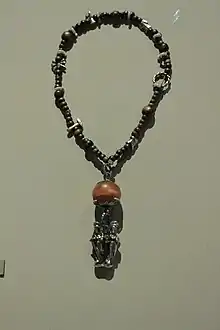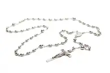 Durante la Edad Media , la evidencia sugiere que tanto el Padre Nuestro como el Ave María se recitaban con cuentas de oración. En el siglo XIII en París , existían cuatro gremios comerciales de fabricantes de cuentas de oración, a quienes se les conocía como paternósteros , y las cuentas se denominaban paternósters , lo que sugiere un vínculo continuo entre el Padre Nuestro ( Pater noster en latín) y la oración del rosario.[10]