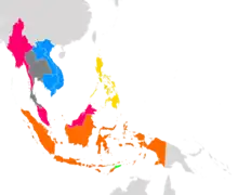 El budismo, sobre todo en Indochina, empezó a influir en las estructuras políticas entre los siglos VIII y IX de nuestra era. Las ideas islámicas llegaron al Sudeste Asiático insular ya en el siglo VIII, y las primeras sociedades musulmanas de la zona surgieron en el siglo XIII.[11][12][13] La era del colonialismo europeo, el principio de la Modernidad y la época de la Guerra Fría revelaron la realidad de la limitada importancia política de los diversos estados del Sudeste Asiático. La supervivencia y el progreso nacional tras la Segunda Guerra Mundial exigían un Estado moderno y una fuerte identidad nacional.[14] La mayoría de los países modernos del Sudeste Asiático disfrutan de un grado de libertad política y autodeterminación sin precedentes en la historia y han adoptado el concepto práctico de cooperación intergubernamental en el seno de la Asociación de Naciones de Asia Sudoriental (ASEAN, del inglés Association of Southeast Asian Nations).[15][16]