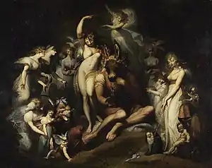 El arte renacentista recuperó el desnudo clásico como ejemplificación de belleza ideal, tanto física como moral. El desnudo era el pretexto perfecto para cualquier composición, desde la más naturalista hasta la más simbólica, expresada esta última a través de múltiples alegorías y personificaciones. En ocasiones, la representación renacentista del cuerpo humano era la del desnudo por el desnudo, una especie de arte por el arte que a menudo desnaturalizaba el propio tema del cuadro, fuese religioso o mitológico.[65] En el Renacimiento el desnudo dejó de ser motivo de vergüenza y, en contraposición, adquirió un nuevo carácter heroico o incluso sagrado (sacra nuditas).[66] Según Louis Réau (Iconografía del arte cristiano, 1955), «los artistas del Renacimiento consideraban la representación del cuerpo humano en su desnudez triunfante como el objeto primordial de las artes plásticas».[66]